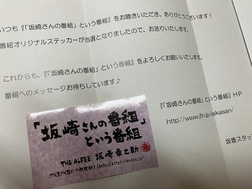 !! 沼人さんから、坂番聞いていたらお名前が~ と教えて頂き、いつ来るかなぁとワクワクドキドキ。 そして、今、ポストをみたら来てました! さぁ、開封の儀✄ ジャン♪♪ 嬉しいなぁ。 宝物にします(*ˊ˘ˋ*) ALFEEさんからのプレゼント‥ コメント lilly 2025.12.09 20:41 メンション じゅえさん あの時のですか? 良かったですねー♫おめでとうございます! はなやさい 2025.12.09 20:03 メンション わぁい♡ じゅえさまお揃いっ♡ このところ超多忙過ぎて全然ラジオも追いつけてませんが、物凄く嬉しいです(#^^#) おめでとうございます♪ じゅえ 2025.12.09 18:47 メンション @よちこ さん 普段くじ運が弱いので、まさか!ワタクシなんて と思っていたら。 ホント嬉しいです! よちこ 2025.12.09 08:36 メンション じゅえさん❣️ おめでとうございます✨ お宝がどんどん増えて行きますね ∩^ω^∩ コメントするためには、 ログイン してください。