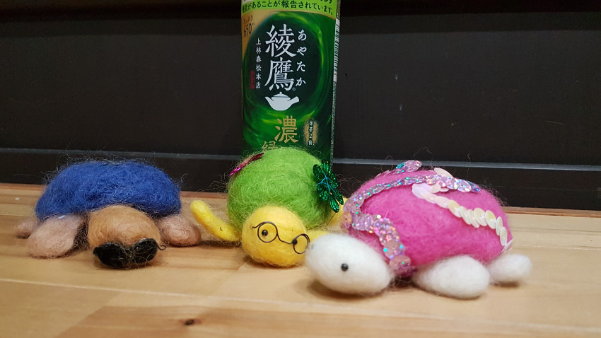 カメフィーさんの幸ちゃんの甲羅と飾りが綾鷹のボトルと同じですね(^O^)
