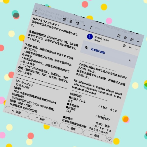 名古屋ライブ2days当選しました。他は全滅ですが、名古屋にご縁をいただいたみたいです。今から楽しみです。