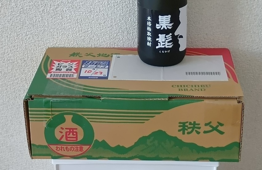 お酒2本送ってもらって秩父の山が描かれた箱で届きました。