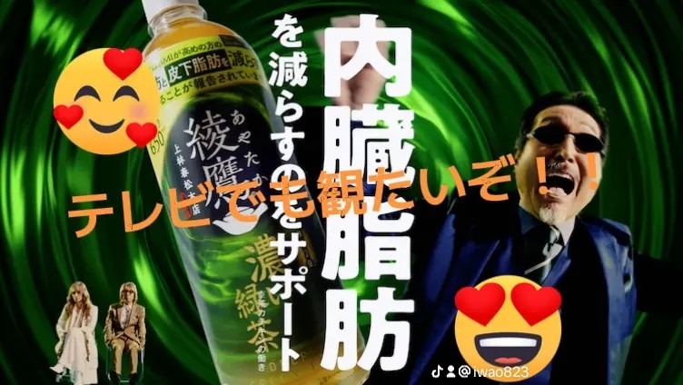 今朝1日の気合いを入れる為、テレビをYouTubeに切り替えると、トップのサムネで綾鷹のWebCMが…観てビックリ!!!!( ; ロ)゚ ゚