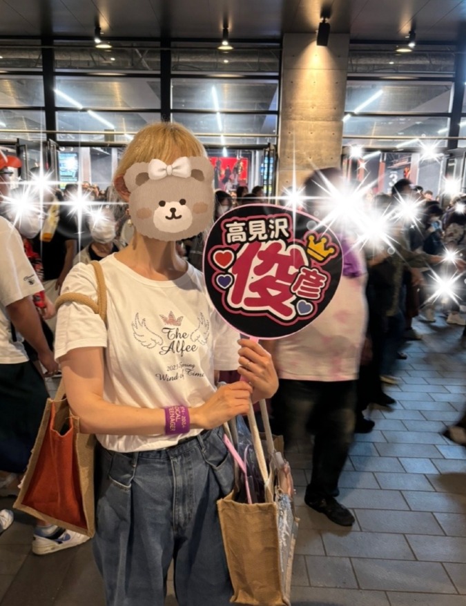 アイドルファンの皆さんはコンサート中にうちわを出して推しにアピールするのだけど、アルフィーさんは公式のグッズ以外の使用は×とのことなので私は写真用に♡