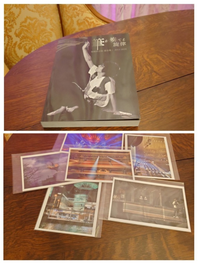 一枚だけに絞れないから、額装作品は断念!その代わりこれまでの書だけを集めた書全集も豪華版にて購入!こちらはなんとお持ち帰りさせていただけます♪そして豪華の何が豪華なのかというとお写真が6枚付いてくると♡ 鏡に映ったご自身のお姿を撮ったお写真とステージから見た客席の写真、そして何故か行ったことのある場所も… すっかり魅入っております♪