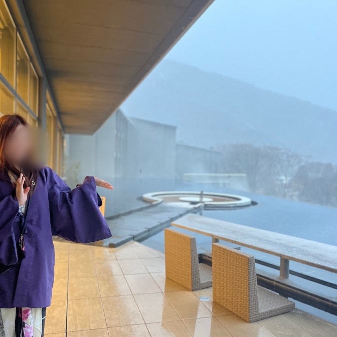 夫のプレゼントの目玉だったと思われるホテルのインスタ映えスポットらしい絶景足湯もただの真っ白(笑)