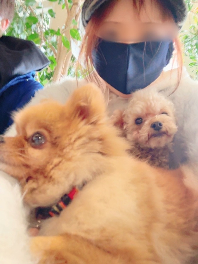 最近、わんちゃんにモテモテの私たち。いっぱい膝に乗ってくるのだ。足下にもいて順番待ちしとるのです♡は〜幸せ。