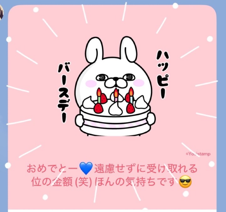 お誕生日当日、村長サポーター兼永遠の平メンバー@藤紫織ちゃんから、お祝いのLINEギフトが届きましたぁ!!
