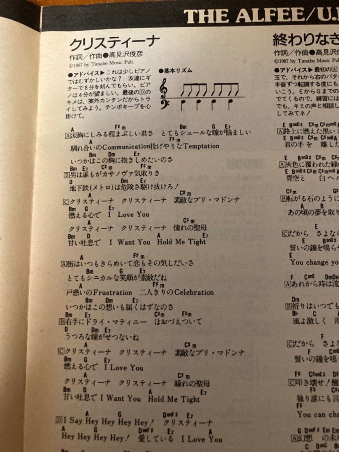 アルフィーがニューアルバムを出した頃の付録なので、全曲歌詞とコードネームが載っています