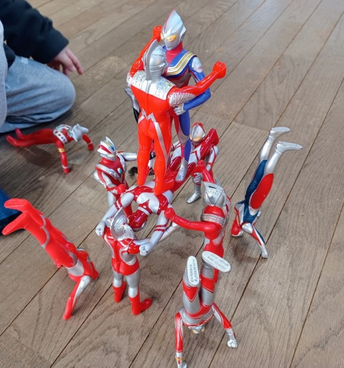 と……言うことでゴジラくんにも高見沢さんのお祝いをしてもらって、ウルトラマン達もお祝いの組体操をしてもらいました🎊