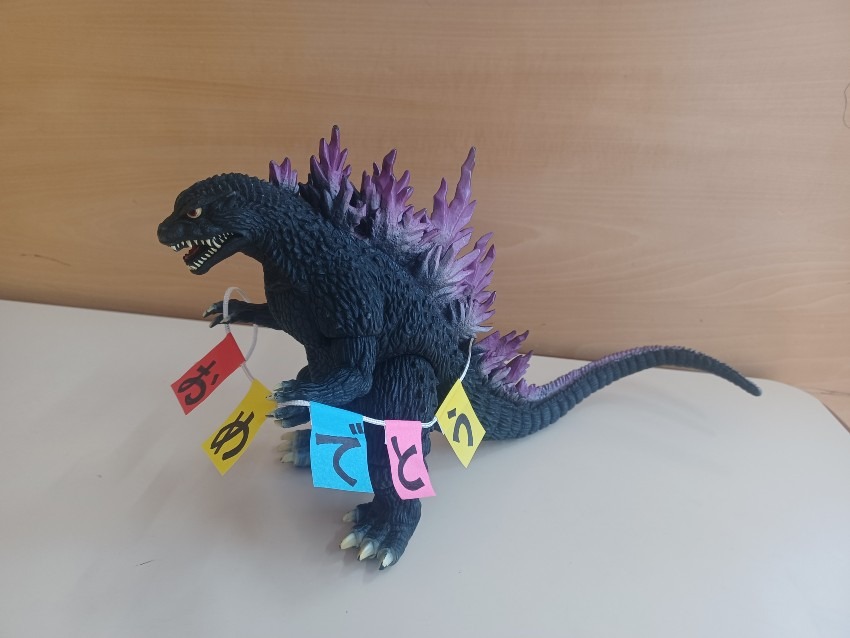 朝からゴジラを持ってウロウロしてたら、ゴジラ好きの先生からゴジラについて熱く語られました