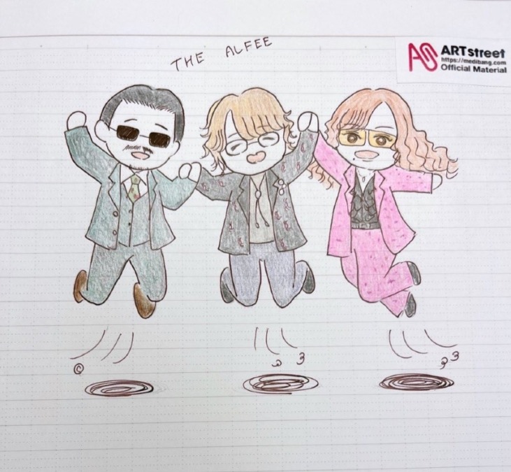 好きなアニメや漫画のファンアートを見るのが大好きな私。アルフィーを好きになってからもXやpixivなどでファンアートを見るのが楽しみで仕方がない。ファンアートを見るのは好きだけど私は絵は描かない、いや描けない…だけどSNSで見かける素敵なファンアートを見るたびに絵を描ける人ってすごいな、絵を描けたらきっと楽しいんだろうなという気持ちになりました。その結果絵を描く練習を始めました。SNSで見かける素敵なファンアートにはほど遠いけれど絵を描くことを楽しみながら練習していつかカッコいい御三方を描けるようになりたいです!絵を描く時にはトレスフリー素材を使っています→ https://medibang.com/page/if/traceanddraw2/